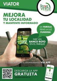 El próximo lunes, 18 de de mayo, el Ayuntamiento de Viator se une a los más de 400 municipios que a nivel nacional disponen del servicio Línea Verde. Se trata de un canal de comunicación directo por el cual los vecinos pueden poner en conocimiento del Consistorio aquellos desperfectos que detecten en su localidad. Gracias a esta herramienta de participación ciudadana, el Ayuntamiento pretende conocer las necesidades del municipio y así, poder dar solución a las cuestiones comunicadas.