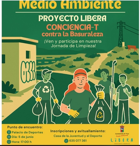 Por otra parte, la colaboración entre el Ayuntamiento de Vícar y el Proyecto LIBERA proveerá a los participantes de todos los materiales necesarios para el voluntariado así como avituallamiento.