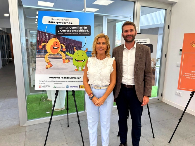 ‘ConciliAlmería’ ha incluido una campaña de sensibilización y difusión en materia de conciliación y corresponsabilidad, con el mensaje principal ‘Bienestar familiar y laboral, todo es empezar’ y protagonizada por dos personajes, ‘Conciliación’ y ‘Corresponsabilidad’, compartida a través de cuñas de radio, lonas y mupis, vídeo, medios de comunicación, redes sociales, y merchandising. “Esta iniciativa creativa está protagonizada por dos personajes, ‘Conciliación’, que tiene la misión de facilitar a nivel personal y laboral para que podamos tener plenitud en todos los ámbitos de la vida, y ‘Corresponsabilidad’, que viene para repartir equilibradamente las tareas domésticas y las responsabilidades familiares”, explica Paola Laynez.