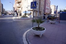 Las obras que se realizan junto a la Avenida Cabo de Gata están pendientes solo de la mejora de la señalización horizontal y vertical de las calzadas y los pasos peatonales resultantes. Previamente, se ha dado continuidad a la alineación del acerado mediante la disposición de baldosas hidráulicas de las mismas características formales y materiales que las existentes sobre la zona. Junto a ello se ha creado una pequeña zona de parterre, utilizando para ello bordillo de hormigón tipo ‘bota’ sobre el que ha quedado dispuesta una nueva plantación a base de plantas tapizantes y especies arbustivas variadas. Paralelamente, se ha procedido a la acometida de red de riego pública instalando riego por goteo