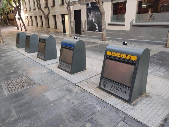 El Área de Sostenibilidad Medioambiental y Energética del Ayuntamiento de Almería ha puesto en marcha una decena de nuevos contenedores soterrados de carga superior ubicados en dos nuevas Islas de Recogida Selectiva. Estas están situadas en la Plaza Masnou y en la calle Antonio González Egea y cada una de ellas cuenta con un depósito para orgánica, otro para papel y cartón, otro para envases y dos para el resto de los residuos sólidos urbanos que se depositan en este tipo de contenedores.
