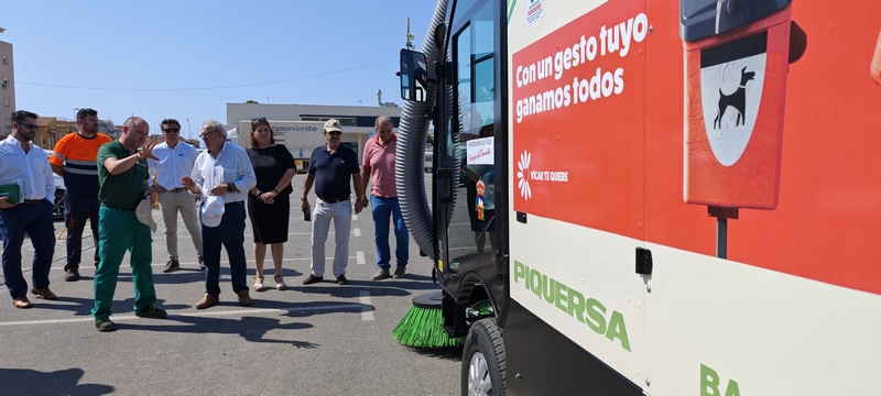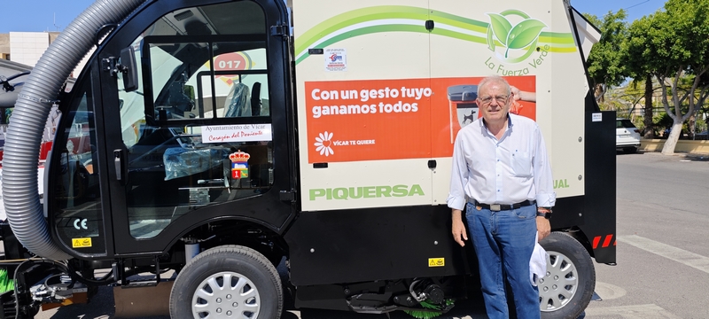 El alcalde vicario, Antonio Bonilla, ha presentado esta mañana las últimas adquisiciones realizadas por el Ayuntamiento para potenciar y mejorar el Servicio de Limpieza municipal, dentro del objetivo de que Vícar sea un municipio limpio y acogedor, tal y como demandan los ciudadanos. Se trata en esta ocasión de una barredora de última generación, que se suma a las otras tres que ya estaban en servicio y que vendrá a reforzar sensiblemente el barrido diario de la vías públicas del municipio. La Piquersa BA-2300 cuenta con una potencia de 49 CV y capacidad de tolva de 2 metros cúbicos y de 400 litros de agua. Junto a esta barredora, el Ayuntamiento ha adquirido dos unidades de fregadoras Karcher BD50 para limpieza de instalaciones municipales, por un importe total de 9.654,86 euros.