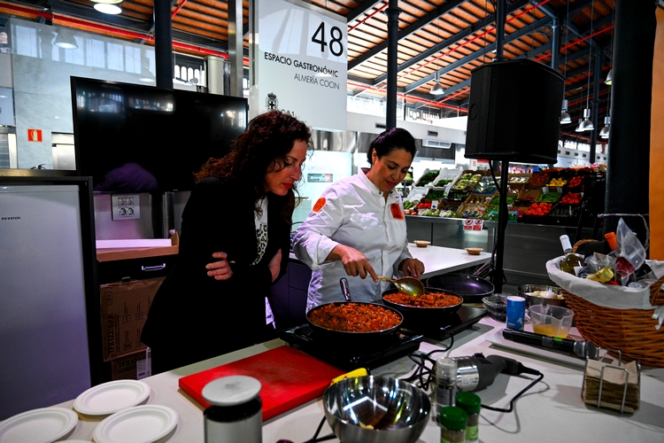 La alcaldesa, María del Mar Vázquez, asiste a esta actividad en la que tres chefs de la asociación Almería Gastronómica han ofrecido consejos y recetas para elaborar un menú delicioso a un precio reducido