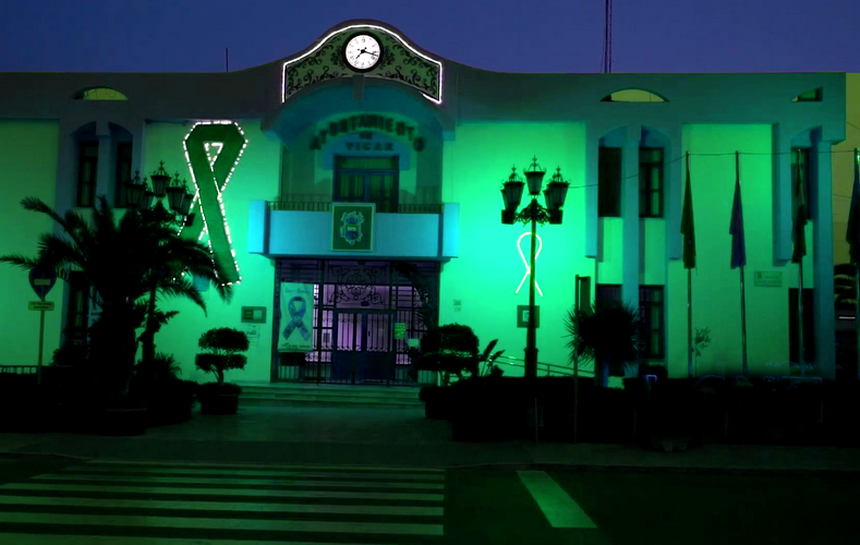 El verde esperanza, color identificativo de los afectados de Esclerosis Lateral Amiotrófica, lucirá esta noche en la fachada del edificio municipal, en Puebla Vícar, en una nueva adhesión de los ciudadanos de Vícar a esta iniciativa de la Asociación Andaluza de Esclerosis Lateral Amiotrófica (ELA Andalucía).