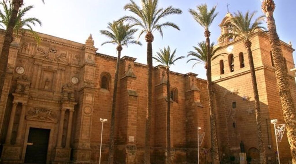 Casi en un siglo a la construcción del templo catedralicio, el campanario su forma responde al conjunto de un inmueble fortaleza inexpugnable en el que se basa el diseño de la catedral almeriense. Fue construida por el obispo don Juan de Portocarrero y rematada a fines del siglo XVIII para colocar las campanas del reloj.