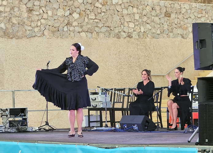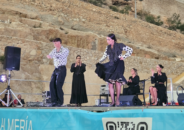 El broche final al cuarto sábado de ‘Atardeceres Flamencos’ lo puso el alumnado de la academia de Ana Alonso, que contó con el cante de Cristo Heredia, la guitarra de José Bellido y las palmas de Isabel Ramírez y la propia Ana Alonso. La juventud y el aprendizaje del grupo de baile lucieron tanto en los momentos corales como en los momentos solistas que tuvieron la oportunidad de brindar a un público entregado, que supo reconocer la savia nueva y el amor al baile flamenco, aprendido de una de las bailaoras almerienses más prestigiosa de su generación.