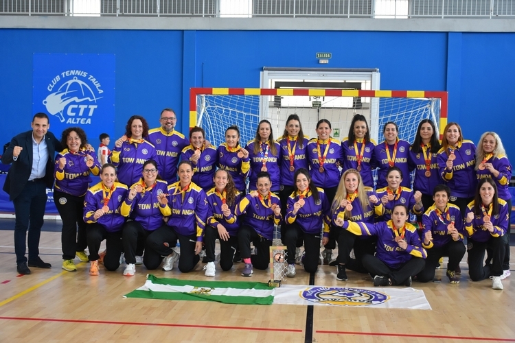 El Club Deportivo Veteranas de Balonmano Towandas se ha hecho con la tercera plaza en la primera edición del Campeonato de España de Balonmano de Veteranas, celebrada en el Pabellón Municipal de Garganes de la localidad alicantina de Altea. Las deportistas, muy vinculadas a Vícar y que juegan y entrenan en el Pabellón José Cano de La Gangosa, disputaron el bronce al Club Balonmano Getasur Veteranas por 13 goles a 9. El alcalde de Vícar, Antonio Bonilla, se suma a la “satisfacción por este excelente puesto para el equipo de veteranas” y les anima a “seguir entrenando y cosechando nuevos éxitos deportivos”.