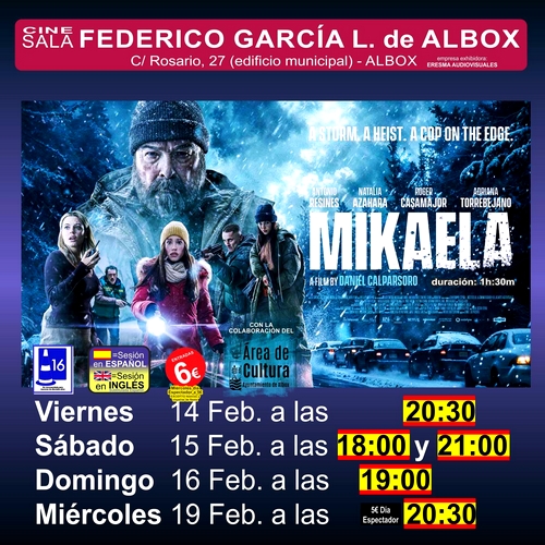 Esta semana se proyecta ‘Mikaela’. Película española de acción y thriller dirigida por Daniel Calparsoro y protagonizada, entre otros, por Antonio Resines. Se mantendrá en cartelera hasta el próximo miércoles 19 de febrero.
