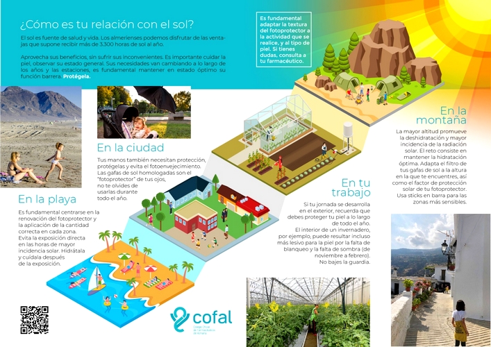 En el día a día, en la ciudad y en el trabajo, también es necesario mantenerse alerta. En el caso de la ciudad el Colegio de Farmacéuticos de Almería recuerda que “las manos también necesitan protección, hay que protegerlas y evitar el fotoenvejecimiento”, recomendando también usar gafas de sol homologadas durante todo el año. En el puesto de trabajo recuerdan que si la jornada se desarrolla en el exterior hay que protegerse todo el año. Además, subrayan que “en el interior de un invernadero, por ejemplo, puede resultar incluso más lesivo para la piel por la falta de blanqueo y la falta de sombra de noviembre a febrero”.