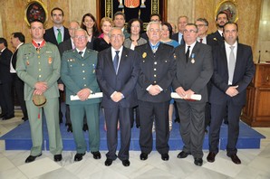 Durante el acto se han hecho entrega de un total de 5 medallas del mérito civil; la primera a Custodio Hidalgo, en reconocimiento a toda una vida profesional en el Cuerpo Nacional de Policía, marcada por la disciplina y la excelencia, la segunda a José Espinosa Carpintero, como reconocimiento a la labor desarrollada al frente del servicio de Protección Civil en el Ayuntamiento de Adra, la tercera a Justo Sánchez Fernández, capitán de la Guardia Civil por su entrega, dedicación y dotes de mando, puestas de manifiesto en los más de 40 años de servicio y por su intervención en las riadas de septiembre de 2012 en el Levante, al subteniente de la Guardia Civil, la cuarta a Antonio Cerezo Mesas, en reconocimiento a su destacada actuación en las riadas de septiembre de 2012, y por último al agente del Cuerpo Nacional de Policía, Manuel Fernando Novo Morcillo, en reconocimiento a su profesionalidad y motivación personal que le llevaron a actuar de forma heroica poniendo en riesgo su vida para salvar la de un semejante.