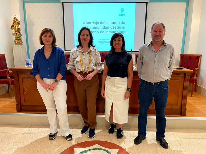 El Colegio Oficial de Farmacéuticos de Almería continúa con el programa de formación para aportar conocimientos a los colegiados y, de esta manera, contribuir a la mejora de la calidad de vida de las personas. Y, con este objetivo, se han organizado las I Jornadas de Enfermedades Autoinmunes, donde han abordado la fisiopatología, diagnóstico y tratamiento de las enfermedades autoinmunes, con información actualizada y relevante, de la mano de tres expertos: Pedro Martínez García, médico especialista en Inmunología. Unidad de Autoinmunidad. Hospital Clínico Universitario Virgen de la Arrixaca, Murcia; Rebeca Reyes García, médico especialista en endocrinología. Unidad de endocrinología y nutrición; y Gracia Cruz Caparros, médico internista, especialista en Medicina Interna, en el Hospital Universitario Poniente.