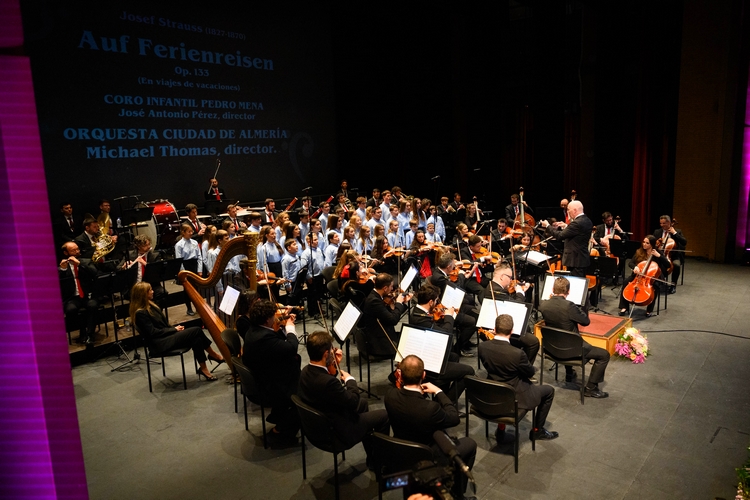 La Orquesta Ciudad de Almería, bajo la dirección de Michael Thomas, entregó su Clave de Oro al Coro Infantil Pedro Mena, que ha participado en el programa, en un Auditorio Maestro Padilla con entradas agotadas