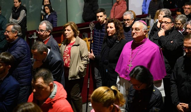 El Vía Crucis con el Santo Cristo de la Escucha, que sobrecoge su figura amorosa en la oscuridad, estuvo presidido por el Obispo diocesano, Monseñor Antonio Gómez Cantero y la dirección pastoral por el Deán electo y canónigo magistral Rvdo. Juan José Martín Campos, que fueron interviniendo en las XIV Estaciones con exhortaciones espirituales cuyos fieles escuchaban con suma atención y en silencio, solo roto por los cánticos propios de este acto piadoso.