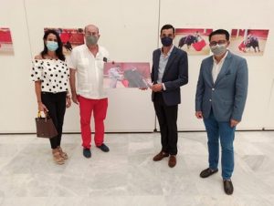 El diputado de Cultura y Cine, Manuel Guzmán que, junto al presidente del Foro 3 Taurinos 3, Juan Aguilera, y la concejal del Ayuntamiento de Almería, María del Mar García Lorca, han acompañado al matador al Patio de Luces de Diputación donde ha visitado la exposición ‘Emociones’, de los fotógrafos José Luis Molina y Miguel Asís, donde se le ha hecho entrega de una imagen protagonizada por él en la Feria de Almería.