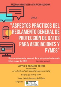 EL EJIDO.- Abierto el plazo de inscripción del taller de Participación Ciudadana ‘Aspectos prácticos del Reglamento General de Protección de Datos para Asociaciones y Pymes’