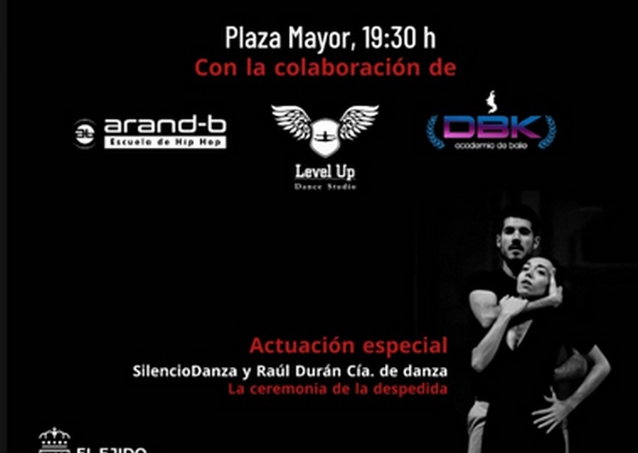 La Concejalía de Cultura organiza este evento, donde participarán ARAND-B, Escuela de hip-hop; Academia de baile DBK; y LEVEL UP, Dance Studio, quienes serán las encargadas de abrir la actividad para luego dar paso al show ‘La ceremonia de la despedida’, de Silencio Danza y la compañía de danza de Raúl Durán. Este espectáculo estuvo nominado en 2022 a los VIII Premio Lorca y aborda grandes temas como el amor, la indiferencia y el duelo.