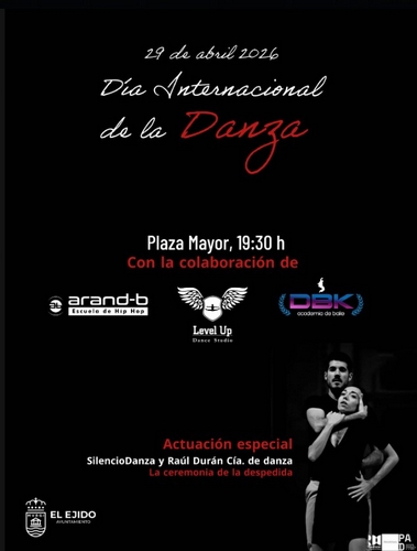 La Plaza Mayor de El Ejido acogerá este miércoles 29 de abril a las 19:30, con motivo del Día Internacional de la Danza, un gran espectáculo en el que participarán las academias de baile del municipio y que contará con la actuación ‘La ceremonia de la despedida’.