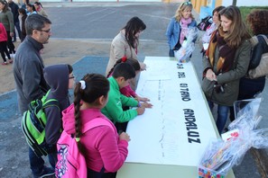 Este lunes ponían el broche final a esta fiesta con un acto conmemorativo al que acudía la concejala de Servicios Sociales, Delia Mira. Éste ha consistido en la lectura de un manifiesto y la elaboración de un gran mural en el que los alumnos han ido dibujando sus manos sobre las que han escrito palabras que reivindican aquellos valores importantes que deben de primar en la sociedad, tales como: el amor, la solidaridad, la tolerancia, el respeto, la paz o la unión entre los pueblos.