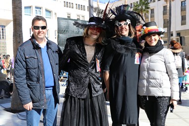 La actividad carnavalesca, organizada por el área de Cultura del Ayuntamiento de El Ejido, arrancó en la Plaza Mayor donde sobre un gran escenario el grupo Alejú ha escenificado el ‘Velatorio de la Sardina’, con la participación de figurantes y actores de negro que con grandes dosis de humor, ironía y sarcasmo ha llorado la pérdida, han repasado los temas y noticias de más actualidad y han terminado repartiendo bollos de chocolate y anís entre los asistentes.