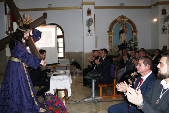 Tras ello, el Hermano Mayor de la Cofradía, Juan Espinosa, ha tomado la palabra para transmitir el agradecimiento a todos aquellos que han hecho posible la restauración de las dos tallas titulares de esta recién constituida Cofradía y se ha procedido a la entrega de un cuadro conmemorativo de este día al restaurador, así como a la presentación del cartel de la Semana Santa 2018 de Balerma, el cual ha sido pintado de forma artesanal por Ojeda.