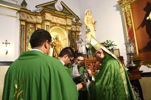 EL EJIDO.- El Obispo bendice la imagen de Santa María de la Cabeza