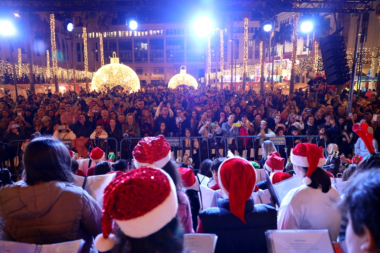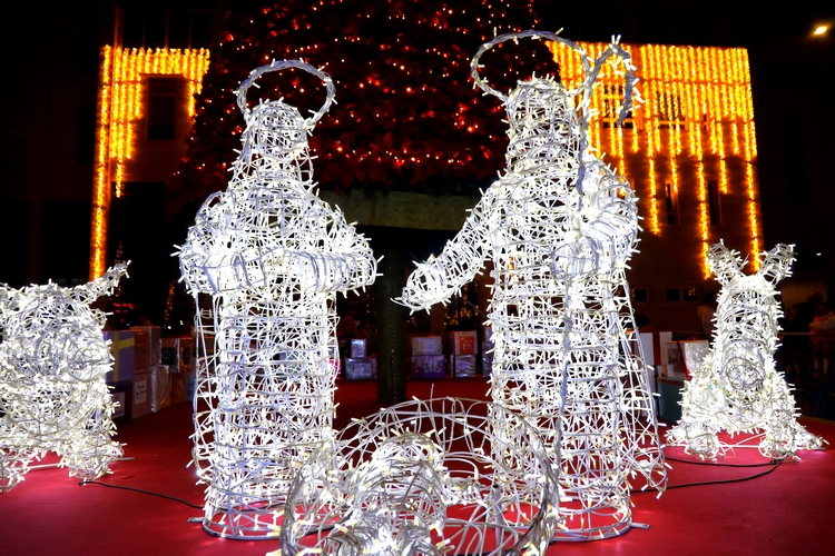 La Plaza Mayor destaca con un gran árbol conformado por 2.000 pascueros que está coronado por una gran estrella brillante y a sus pies un Nacimiento a tamaño natural.