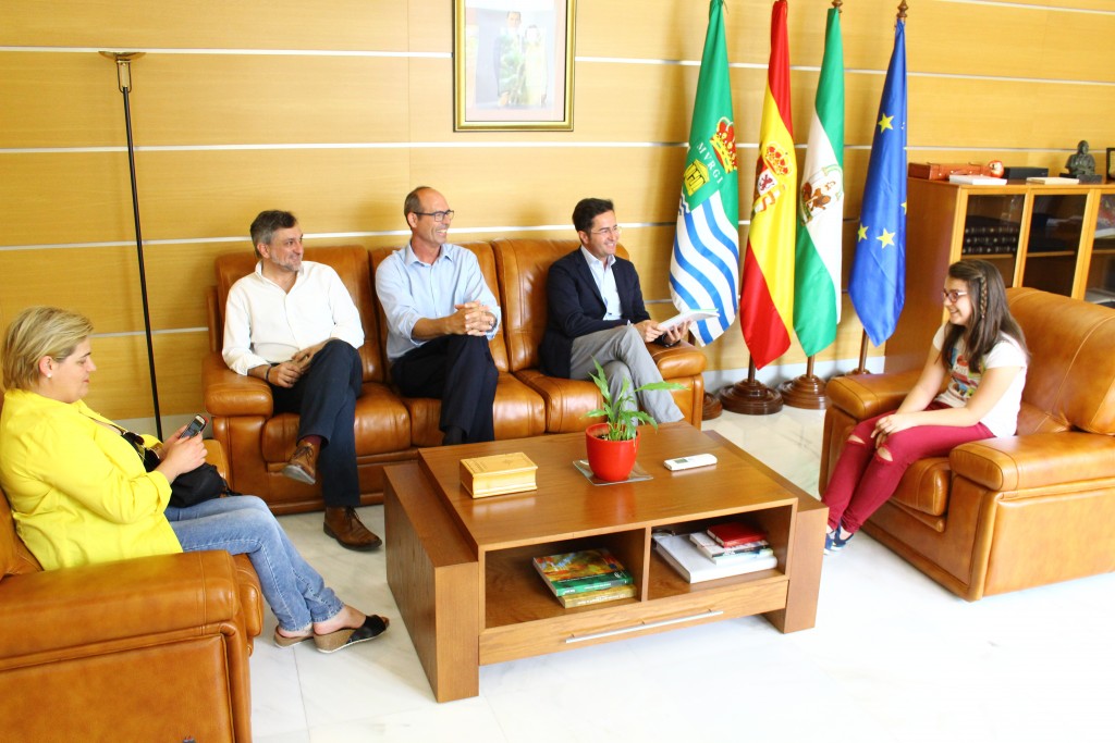 El alcalde de El Ejido, Francisco Góngora, ha recibido a la ganadora en el Ayuntamiento para felicitarla y para conocer de primera mano los planteamientos y peticiones que ha reflejado en su redacción. La joven, que ha estado acompañada del vicepresidente de Diputación, Ángel Escobar, y del presidente de la Junta Local de Santa María del Águila, Juan Carlos Brabezo, ha recorrido algunas dependencias municipales como el Salón de Plenos, Junta de Gobierno, la Alcaldía o la Radio municipal.