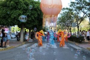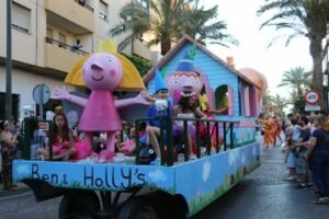 El séquito ha estado compuesto por unos 230 figurantes que han hecho las delicias del público con sus interpretaciones, coreografías y números. Además, la Batalla ha estado precedida por un total de diez carrozas temáticas, entre las que han destacado la de ‘Patrulla Canina’, ‘Angry Birds’, ‘Los Picapiedras’, ‘Súper Héroes’, ‘Vaiana’, ‘Tadeo’, ‘Jones, ‘Ben y Holly’, ‘Tortugas Ninja’ y la carroza de la reina y damas salientes, así como las aspirantes. A ello, se ha sumado dos batucadas, la ‘Tumbatá’ y ‘Kalima du Samba’ y los pasacalles ‘Fantasía marina’ y ‘Grease’ de la Academia Sol de Almería.