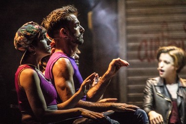 Mayumana este viernes noche irrumpió con fuerza en el 41 Festival de Teatro de El Ejido. La compañía ha representado la primera de las cuatro funciones de su espectáculo ‘Rumba!’ que narra la historia de dos familias que viven enfrentadas en el mismo barrio. En medio de su odio y disputas nace un romance inesperado que desencadenará el conflicto. La música y el ritmo lo ponen temas de éxito de Estopa tan conocidos como ‘Malabares’, ‘El run run’, ‘La raja de tu falda’, ‘Primavera’, ‘Cacho a cacho’, ‘Gafas de rosa’, ‘Tu Calorro’, ‘Pastillas para dormir’ o ‘Deminos’.