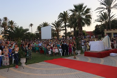 Tradicional Misa, que tuvo lugar ayer en el Parque del Palmeral, y posterior procesión por las calles de Balerma de la Virgen de Las Mercedes, patrona de esta localidad costera.