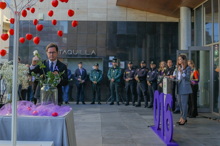 Durante el emotivo acto, que ha estado ambientado con la música del Conservatorio de Música de El Ejido, se ha recordado la memoria de las 38 mujeres asesinadas en lo que va de año en España (11 en Andalucía), así como los 3 niños asesinados por violencia vicaria. Además de la lectura de un manifiesto, se han ofrecido simbólicamente 41 rosas blancas y se ha nombrado a todas y todos las asesinados, honrando su memoria y como símbolo de pervivencia y se ha colocado un árbol con 41 corazones.