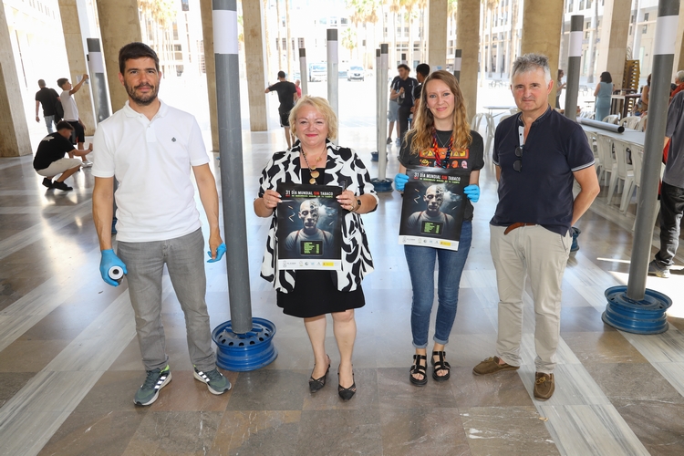 Para ello se ha llevado a cabo hoy un taller en la Plaza Mayor con alumnos de FP básica de mecánica del IES Murgi y alumnos del Taller de Jardinería municipal en el que han formado y pintado mega cigarros con mensajes sobre las consecuencias que tiene para la salud el consumo del tabaco como cáncer de pulmón, cáncer de boca, mortalidad prematura o ansiedad, entre otros.