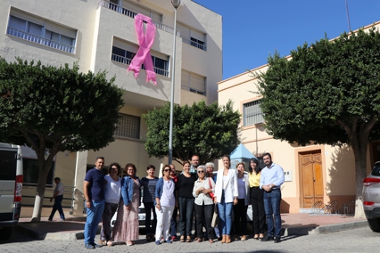 La Asamblea Local de la AECC contra el cáncer de El Ejido, con la colaboración del Ayuntamiento, ha desplegado un gran lazo de color rosa en la fachada del Centro Asociativo Municipal con el que pretende conmemorar el Día Mundial de la Lucha contra el Cáncer de Mama que, como es sabido, se celebra cada 19 de octubre. A este acto, ha acudido la concejala de Servicios Sociales y Mujer, Almudena Martínez; la edil de Participación, Delia Mira; y los concejales municipales Julia Ibáñez y José Cristian Callejón; acompañados por la presidenta de la Asociación en El Ejido, Ángela Carande, miembros de este colectivo, así como de otras asociaciones presentes en este centro municipal. Todos ellos han coincidido en la importancia de conmemorar esta fecha en el calendario con el fin de seguir avanzando en materia de prevención, investigación y tratamiento de cara a encontrar la cura definitiva de la enfermedad.