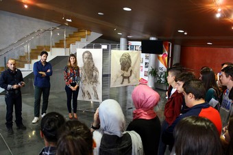 Cada una de las obras, en las que se recogen rostros de mujeres y niñas marcadas por el drama de la guerra, va acompañada por un pie de foto que hace referencia a algunos de los artículos de la resolución de la ONU en los que se fundamenta la exposición.