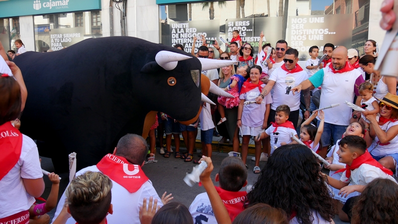 Este domingo, 10 de septiembre, la ciudad de Adra ha honrado a su patrono, San Nicolás de Tolentino, en su día grande. Y lo ha hecho con el XVII Encierro de San Nicolás, una cita ya emblemática que reúne a cientos de personas a lo largo de la Carretera Natalio Rivas, en un simpático encierro de toros hinchables. Una cita que, como cada año, ha finalizado en la plaza de toros hinchable, instalada junto al Centro de Interpretación de la Pesca. El alcalde de la ciudad, Manuel Cortés, acompañado de concejales de su equipo de Gobierno, ha disfrutado de esta cita y ha hecho que arranque con el ‘chupinazo’.