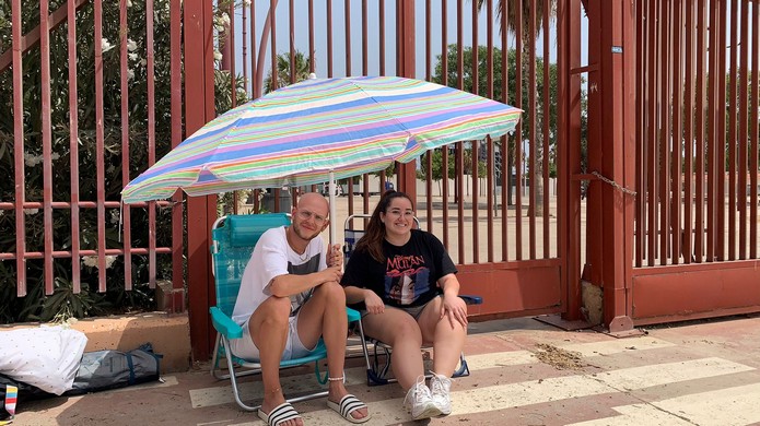 El fenómeno de Rosalía llega a Almería. Si este fin de semana se ha conocido que las reservas hoteleras han desarrollado un repunte del 25% a causa del concierto que la artista de fama mundial ofrecerá en Almería este miércoles, 6 de julio, estrenando su nueva gira ‘Motomami Tour’, desde este lunes ya se puede ver a seguidores acampados en la puerta del Recinto Ferial de cara a poder situarse en la mejor posición posible para el concierto. En el ‘primer lugar’ de la fila se ha situado un grupo de diez seguidores almerienses que están realizando turnos de alternancia por parejas. Por motivos de seguridad, el Recinto del Ferial permanecerá cerrado al público los días 5 y 6 de julio.