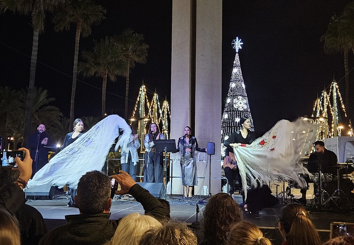 Después del gran éxito de la pasada Navidad, la Plaza de las Velas vuelve a contar este año con un escenario por el que, a lo largo de estos días, se interpretarán villancicos en distintos formatos, desde los clásicos, a los tradicionales o a los flamencos. Sin ir más lejos, este fin de semana recibió a la Asociación Vocla y la Escuela Coral Vocla Román Barceló en la tarde del viernes y al grupo de la compañía flamenca de Antonio de Quero en la del sábado. Siemrpe con entrada libre y en el marco de la programación especial de Navidad y Reyes puesta en marcha y organizada por el Área de Cultura, Educación y Fiestas Mayores del Ayuntamiento de Almería.