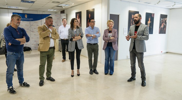Este lunes por la tarde, el diputado de Cultura y Cine, Manuel Guzmán; la diputada de Igualdad, Carmen Belén López; el concejal de Cultura de Almería, Diego Cruz; la delegada de Cultura de la Junta en Almería, Eloísa Cabrera, y el coordinador de las Jornadas, Diego Ruiz, han visitado junto al autor la exposición.