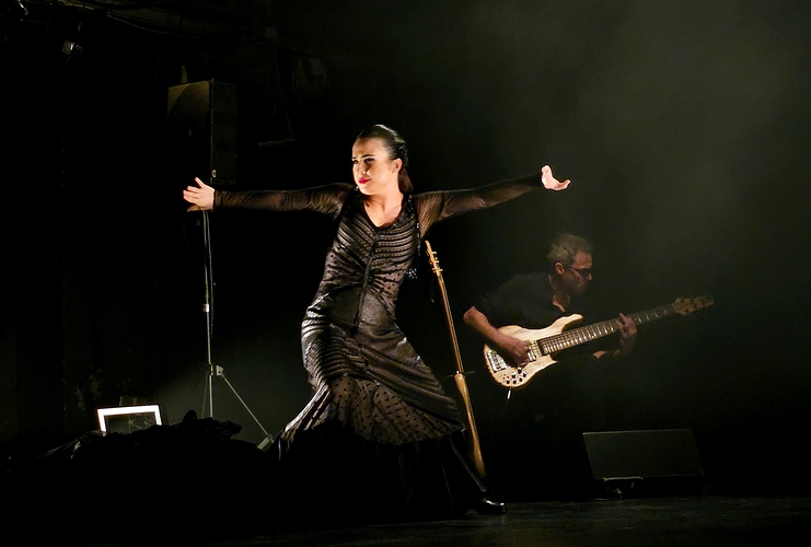A diferencia de sus predecesoras, ‘Tocar a un hombre’ de Julio Ruiz y ‘Que tus ojos miren lo recto’ de Raúl Heras y Santi Rivera, la propuesta de Rousseau ayer sí se sumergió sin ambages en la fuerza del flamenco más sentido y pasional, dibujando una estela de emociones al límite, desde una inicial y lírica entrada reposada con matices orientales, pasando por la pasión de un rojo desaforado sobre el que se cabalgó entre soleás, bulerías y hasta unos graciosos tanguillos que por momentos, en su jovialidad, recordaban la esencia de esos dúos encantadores como los de Pepe Blanco y Carmen Morell o Juan Valderrama y Dolores Abril.