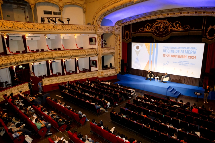 El Teatro Cervantes se ha llenado está mañana con alrededor de doscientos estudiantes relacionados con la imagen y el sonido de distintos centros educativos de la capital y también de la Escuela de Artes que han conocido de primera mano los inicios en la profesión del director Paco Plaza, que ha sido el protagonista en esta nueva edición del Festival Internacional de Cine de Almería (FICAL) de la actividad ‘Cómo hice mi primer largo’.