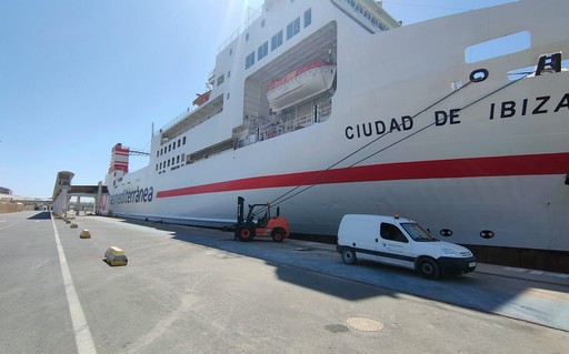 El ferri Ciudad de Ibiza, de la naviera Trasmediterránea, está recibiendo suministro eléctrico desde tierra durante su estancia en el Puerto de Almería, con lo que sustituye los motores auxiliares con los que, normalmente, atiende sus necesidades básicas del buque durante su estancia en el muelle de Ribera. De esta manera, la Autoridad Portuaria de Almería (APA) cumple su compromiso con los colectivos vecinales, reduciendo el ruido y las emisiones a la atmósfera.