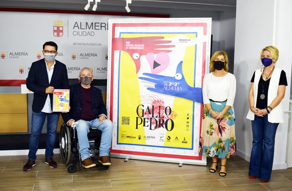 Con las mismas ganas de aprendizaje, de difusión y de compartir experiencias en torno al cine y la discapacidad, vuelve este otoño una nueva edición, la octava, del Festival Inclusivo de Cortometrajes ‘Gallo Pedro’, que desarrollará una decena de actividades desde finales del mes de octubre hasta principios del mes de diciembre. Una iniciativa que organiza este consolidado evento gracias al convenio suscrito con el Ayuntamiento de Almería y con la colaboración de la Diputación Provincial y al que este año se ha sumado la Junta de Andalucía. El programa de este otoño trae una docena de propuestas entre las que se encuentran talleres, proyecciones, exposición, encuentros escolares y el VIII Concurso Nacional de Cortometrajes, para el que se han presentado más de 40 trabajos.