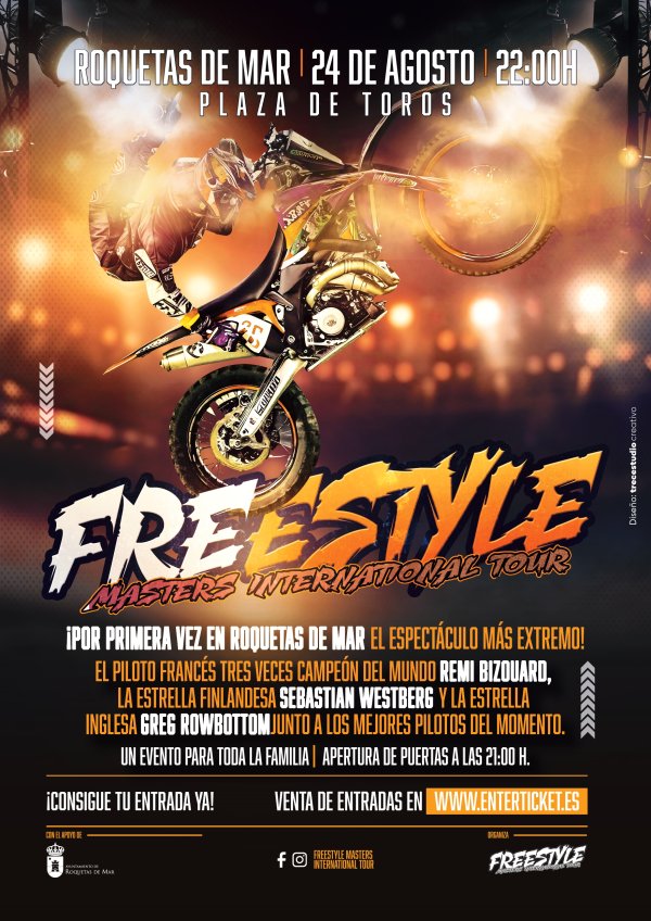 El próximo sábado 24 de agosto, la Plaza de Toros de Roquetas de Mar será el escenario de un evento único e inigualable: el Freestyle Masters International Tour, un espectáculo extremo que, por primera vez, hará vibrar a los aficionados del motor en nuestro municipio. La cita tendrá lugar a las 22:00 horas.