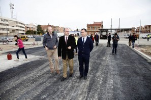 Rodríguez-Comendador, acompañado de los concejales de Urbanismo, Pablo Venzal, y de Fomento y Servicios Ciudadanos, Manuel Guzmán, realizaba este martes una visita a la zona para comprobar el estado de ejecución de unos trabajos que los técnicos municipales certifican en un 75 por ciento y que se centran en estos momentos en la pavimentación de su superficie.