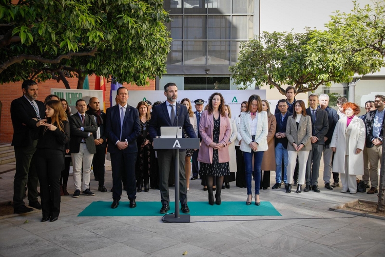 El consejero de Sostenibilidad, Medio Ambiente y Economía Azul, Ramón Fernández-Pacheco ha presidido el acto de la lectura de la declaración institucional con motivo del Día Internacional de las Mujeres, aprobada por el pasado Consejo de Gobierno, en un evento que ha tenido lugar en la sede de la Delegación del Gobierno andaluz, y en el que ha estado acompañado por la delegada del Gobierno, Aránzazu Martín, así como el resto de delegados territoriales, y la coordinadora provincial del IAM, María del Mar Esparza.