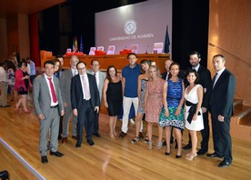 El acto académico estuvo presidido por la vicerrectora de Estudiantes y Empleo, Maribel Ramírez, que estuvo acompañada por el presidente de la Fundación Almería Social y Laboral, Juan Úbeda; su director, José Macías; y el director académico del Centro Universitario de Trabajo Social., Domingo Bonillo.