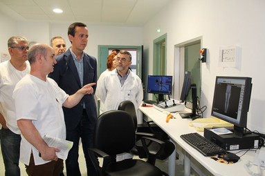 El delegado territorial de Igualdad, Salud y Políticas Sociales, José María Martín ha visitado este lunes el área de Diagnóstico por la Imagen del Hospital de Alta Resolución El Toyo, junto al director gerente de la Agencia Sanitaria Poniente, José Antonio Hernández, los directores médicos y de enfermería de la Agencia, Francisco Cañabate y Celia Rivera y el director de la Unidad de Gestión Clínica de Diagnóstico por la Imagen, José Carlos Sánchez.
