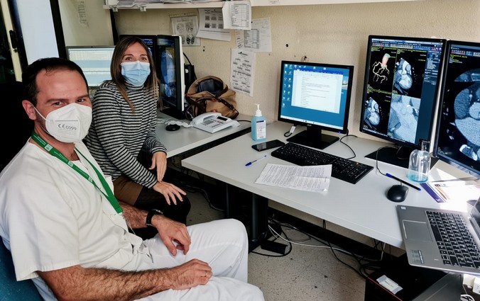 La puesta en marcha de la realización de esta técnica ha sido posible gracias a la implicación y compromiso con los pacientes de Cardiología de los doctores José Castillo, cardiólogo y Esther Cañete, radióloga. Ellos son los responsables de llevar a cabo estos estudios en el Hospital de Poniente.