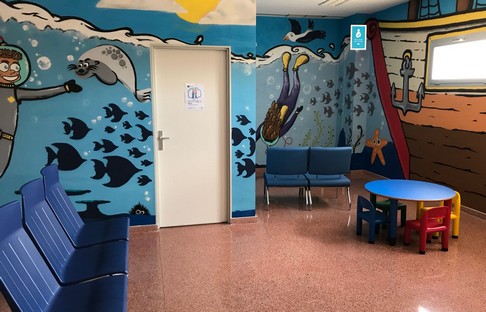 Para hacer el espacio más acogedor, se ha contado con la colaboración del grafitero local Luis Javier Martínez, graduado en Bellas Artes por la Universidad de Granada, que ha realizado un mural titulado ‘Mundo Submarino’, para decorar la sala de espera.
