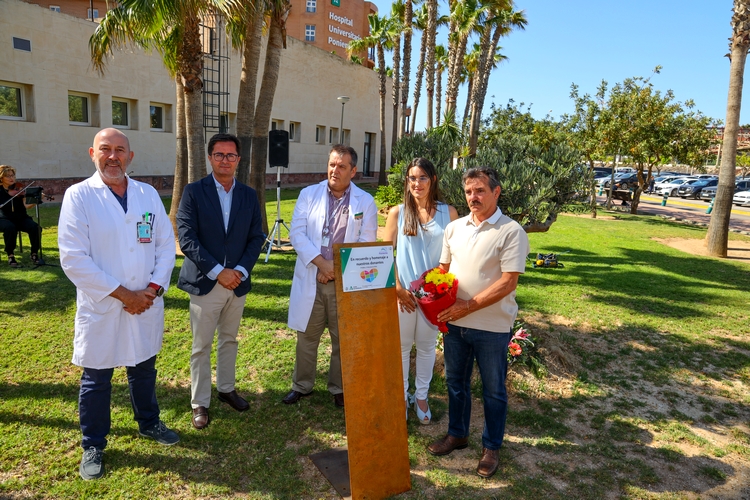 La jornada ha incluido la realización de una ofrenda floral, junto al olivo en homenaje a los donantes, realizado por José Antonio Martín, familiar de una de las donantes que se han registrado este año en el Hospital Universitario Poniente.